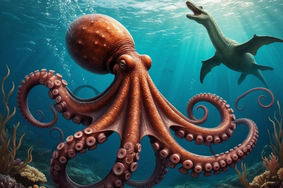 During the Cretaceous period (145 million — 66 million years ago), the seas were inhabited not only by fish and reptiles. Giant octopuses up to 19 meters long roamed them. This corresponds to a modern 6— or 7-story building. Fortunately, no living creatures of this size remain on Earth, and the dimensions were reconstructed by Japanese paleontologists by studying fossilized beaks of ancient cephalopods.