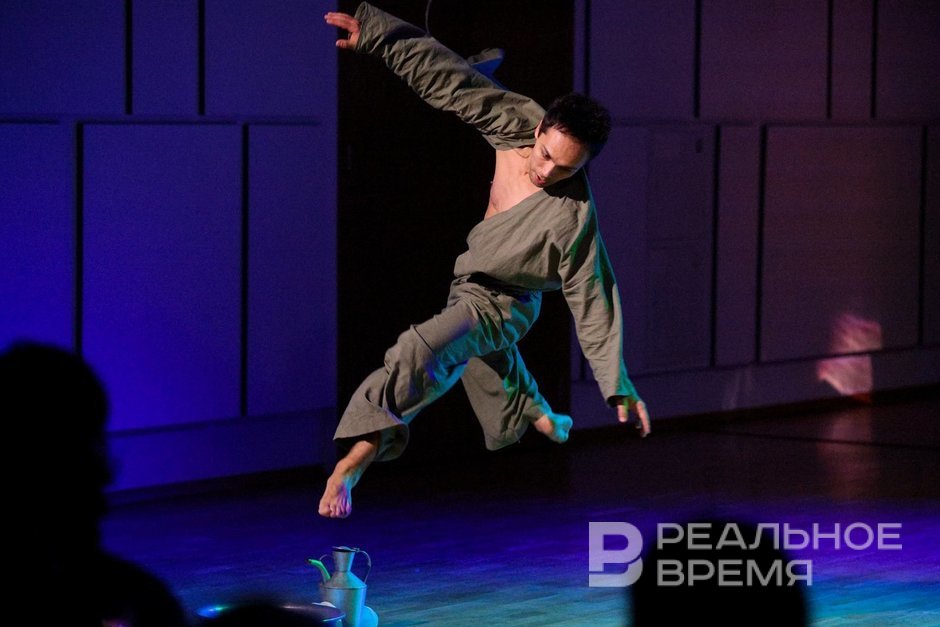 The performance begins with the heroine's slow entrance, leisurely pouring water from a pitcher into a basin — it seems like an homage to the miniatures from Parajanov's “The Color of Pomegranates.” The choreography of the performance is not fixated on one method: folk dance and broken movements of modernity can combine here.